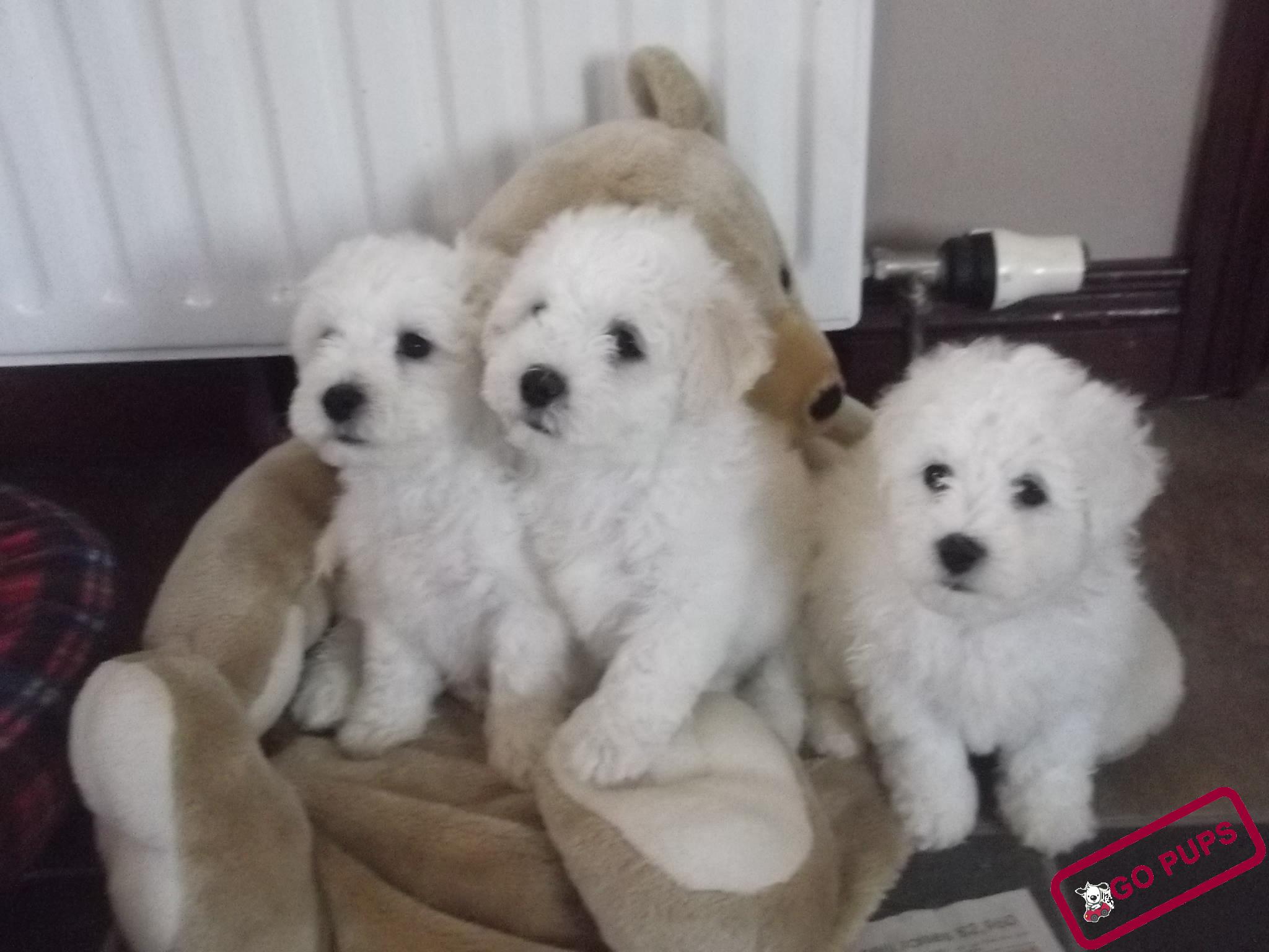 Bichon Frise puppies £270.00 Bichon Frise Pups in Ireland 800 total views, 2 today Report problemProcessing your request, Please wait....Offensive ContentInvalid OfferSpamOther× Home Bichon Frise Pups in Ireland Bichon Frise puppies This ad listing is expired. Photo Gallery All photos (3) Bichon Frise puppies × Additional InfoDog BreedBichon FriseAge10 weeksDate Available fromnowMale Pups Available1 boyFemale Pups Available1 girlLocationArmaghContact Phone Number07518167873Contact E-mailtina.pup@hotmail.co.ukMale and female, vet checked and wormed regularly, will have first vaccine, well socialized with children, good homes essential. co. Armagh, pure bred, non-reg Comments Share Ad Tina20111 Listing Owner Member Since: July 10, 2011