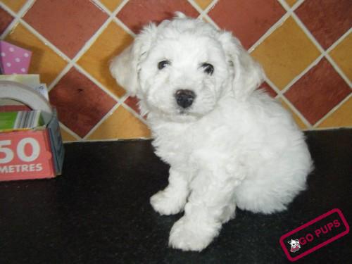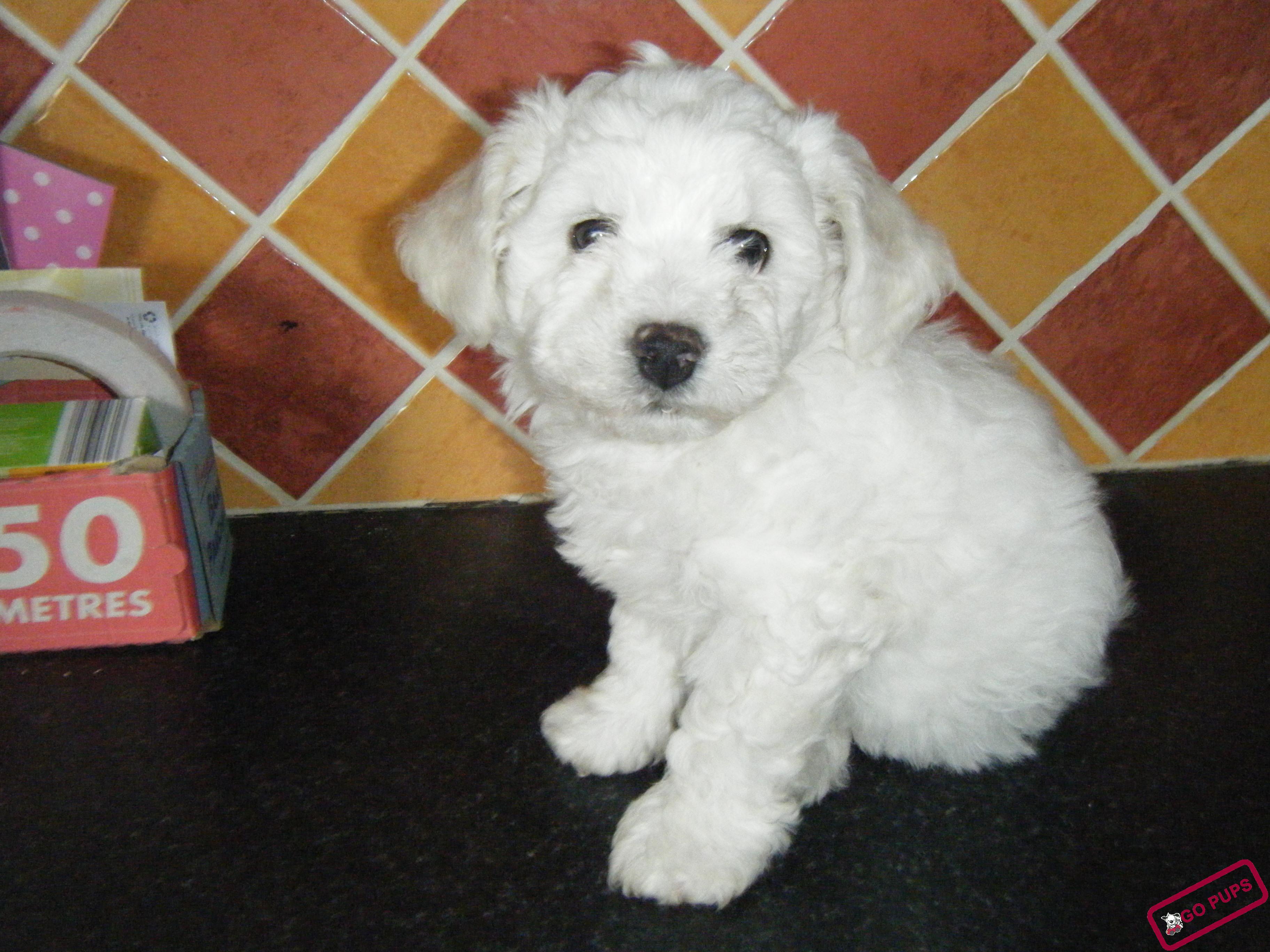 Master Theodore of Kells £280.00 Bichon Frise Pups in Ireland 497 total views, 2 today Report problemProcessing your request, Please wait....Offensive ContentInvalid OfferSpamOther× Home Bichon Frise Pups in Ireland Master Theodore of Kells This ad listing is expired. Photo Gallery All photos (2) Master Theodore of Kells × Additional InfoPrice in Euro300Dog BreedBichon FriseAge10 weeksDate Available fromNowMale Pups Available01LocationCahirciveen, Co,KerryContact Phone Number0879213713Contact E-mailpaulinelyne161@gmail.comBeautiful pure white Bichon Frise puppy with solid black nose, very energetic and playful, lives indoors. Sire is doing well in the show circuit and Dam is a lovely sedate Bitch. Comments Share Ad busymomma Listing Owner Member Since: October 30, 2012